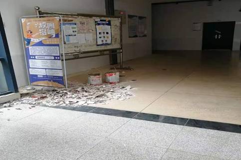3.管理楼和市测楼室内正在大面积修补墙壁,地面建筑垃圾很多。整栋楼的楼梯走道卫生较差,没有新学年开学气氛。