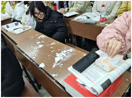 5.在检查过程中发现有些班级个别学生上课不带教材,不做笔记,课桌上空空如也。星期三(2月23日)第一节城管楼211教室后排学生不仅没有带教材而且一直在玩手机游戏。