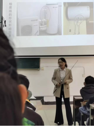 张闻芳督导以“工程形体的相贯线”为教学内容,以“两回转体相贯线的特性”、“相贯线形状的影响因素”、“相贯线的变化趋势分析”、“回转体相贯线的求解问题”等内容展开教学步骤,结合教学PPT,用手绘的形式为学生演示“回转体相贯线”的绘制方法。整堂课内容紧凑,层次清晰,讲解清楚。在教学中合理融入课程思政内容,取得了教学育人兼而有之的效果。